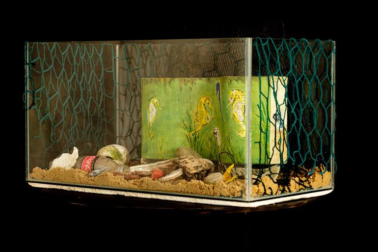 The Knysna Sea Horse is a small delicate creature. It has a very small population whish has only a very small population footprint, on the South Coast of South Africa, putting it in imminent danger of extinction. I have attempted to highlight its plight encapsulating an oil on curved canvas painting...