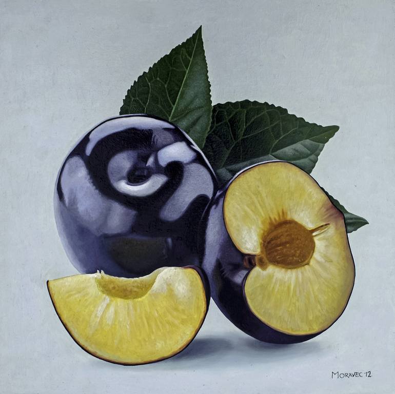 I like the contrast of the shiny dark blue and purple skin of these plums and their yellow juicy flesh.
