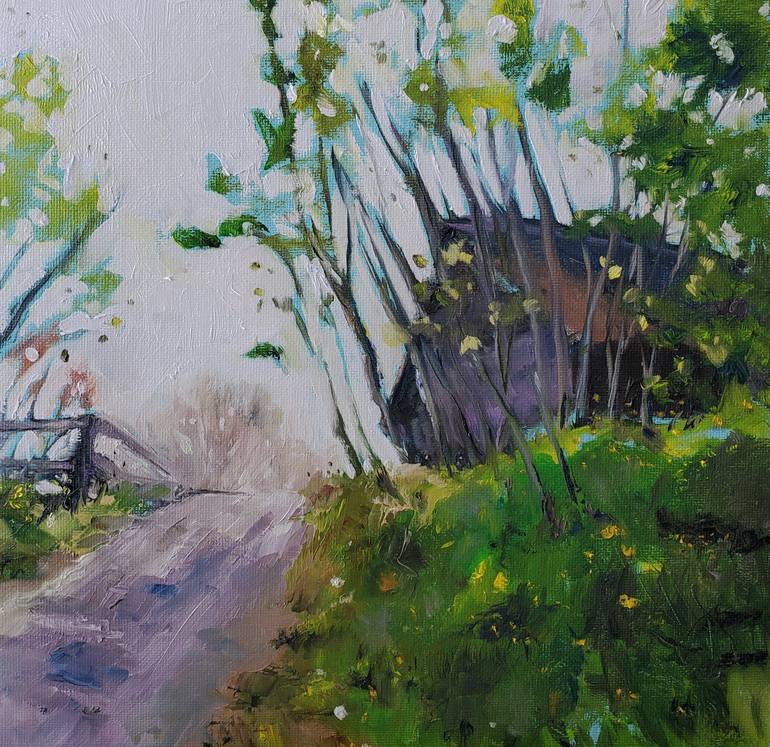 Sheila Romard original oil on canvas - Over the Crest creates a sense of anticipation as we move forward along the rustic path