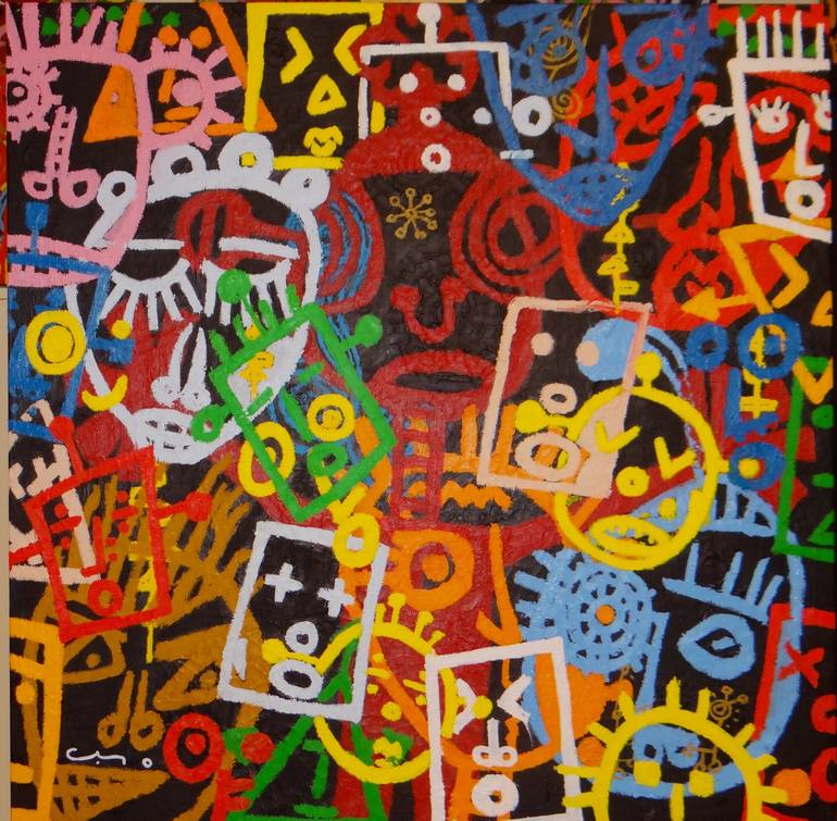 Each person that you see is represented by the masks that they wear. As you grow up in this world it is unavoidable to build up a mask that you present to those you interact with. I present those masks in my works with familiar shapes (circles, triangles, squares) to symbolize how easily recognizabl...