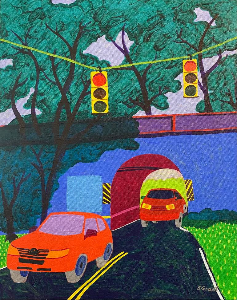My works are vibrant acrylic paintings on stretched canvas, lightheartedly communicating how I see the world. Currently I am working on a large series of landscapes, ranging from urban to suburban and rural. Inspired by life itself, my intention is to intrigue and amuse my audience while they smile at colorful images. After all, people must disengage themselves from a stressful day to day existence and I would like to think my work provides that escape at least for a moment or two.