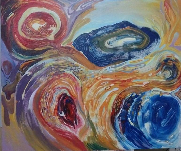This original painting is an inspiration guided by science. We see intricate details that reveal the movement of the Xs in search of the Ys. Do you see the rush hour?Millions of spermatozoas or male cells race towards the ovum in a bid to fertilise. The spiralling effect represents the speed at w...