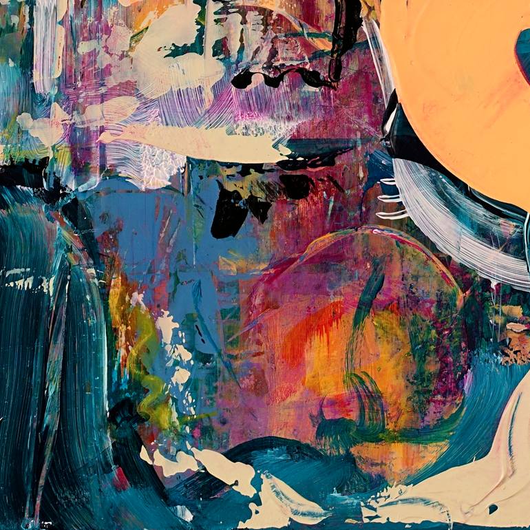 'Palace Pier' This is a highly textured 12" x 12" acrylic abstract painted on a 1.5" deep gallery wrapped canvas. I often work intuitively and begin with random gestural mark-making. In this painting I worked with many layers. I started by filling the canvas with a variety of colorful brushstrokes a...