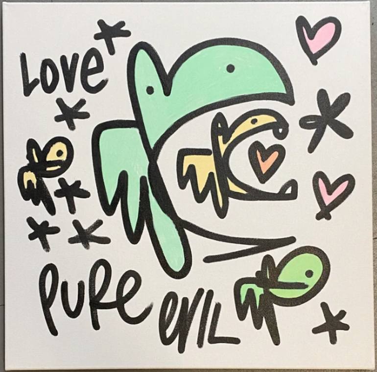 Who is Pure Evil? To understand a bit about Pure Evil it is illuminating to know that he is a descendant of Sir Thomas More, the Lord Chancellor who wrote the controversial work Utopia and who was later beheaded by King Henry VIII. With this busy background (Sir Thomas was later canonised) it is only natural that Pure Evil should explore the darker side of the wreckage of Utopian dreams and the myth of the Apocalypse, a belief in the life-changing event that brings history with all its conflicts to an end. In 1990 PURE EVIL left the Poll Tax Riots of London behind and went to live in California where he spent 10 years ingesting weapons grade psychedelics , thinking about stuff , making electronic music and printing t-shirts . Inspired by skateboard culture and the west coast character graffiti of Twist he returned to London and picked up a spraycan and started painting weird fanged vampire bunnies everywhere. Pure Evils ancestry is alleged to include eight saints: Vladimir the Great, Saint Anna of Russia, the Holy Martyrs Boris and Gleb, Saint Stephen of Hungary, Saint Margaret of Scotland and Saint Mathilde together with Saint Thomas More, Humbert III of Savoy and several European royal families.He was also a descendant of the Old English Chieftain Ailric, Kings Thane to Edward the Confessor, who held Cawthorne and much of South Yorkshire before the Conquest.