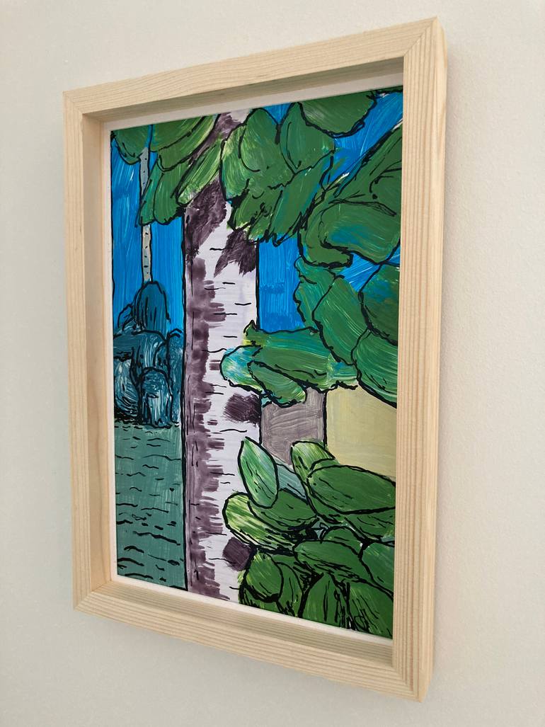 This is an acrylic painting on 140lb 12x8 in Polypropylene paper. Image size is 11 5/8 x 7 5/8 in. I use visual sources to construct my paintings. Depending on what I see, the painting may end up resembling the source or it may not. The outcome is arbitrary, and is often decided in the process of p...