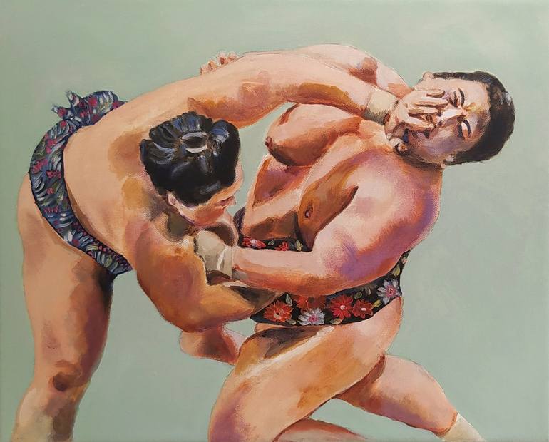 Sumo is a Japanese traditional sport which as an artist always attracted me because of those huge bodies moving so quickly and all their rituals and coiffures and their curious mawashi, the long silk ribbon they wear as a perizoma with a knot in the back. In this series I wanted to mix all my favori...