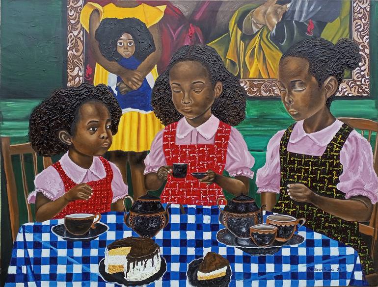 Olaosun Oluwapelumi born 1995. Olaosun Oluwapelumi is a passionate artist who dedicates herself to creating positive change in the world through her art. Her medium of choice is acrylic and oil on canvas, and she spends days working on each piece to ensure that it expresses her emotions and connects with her viewers. Olaosun draws her inspiration from her life experiences and everything that touches her feelings. She is particularly interested in conveying messages on gender inequality problems, social issues, and African history among other issues connected to black people. Through her art, Olaosun aims to create a connection with her viewers, making them feel the vehemence in the story she tells. The process of researching and working with different materials has brought Olaosun new challenges, and new ideals, which encourage her to continue creating multiple layers in her artwork. Her dedication to self-teaching has allowed her to develop her skills in pencil and paint and has given her the confidence to express herself through her art. Olaosun Oluwapelumi was born and raised in Osun State, Nigeria, and currently resides in Ibadan. She holds a BSc in Geography and Planning Science from Adekunle Ajasin University. Her passion for art has been a lifelong pursuit, and she continues to hone her craft with every piece she creates. Olaosun believes that black is not just a color, but our existence, and she uses black skin in her work to convey this message. Olaosun's works have been exhibited in galleries and art fairs both locally and internationally. She continues to create art that sparks emotions and creates positive change, and her works are a testament to her dedication to her craft and her desire to make a difference in the world.
