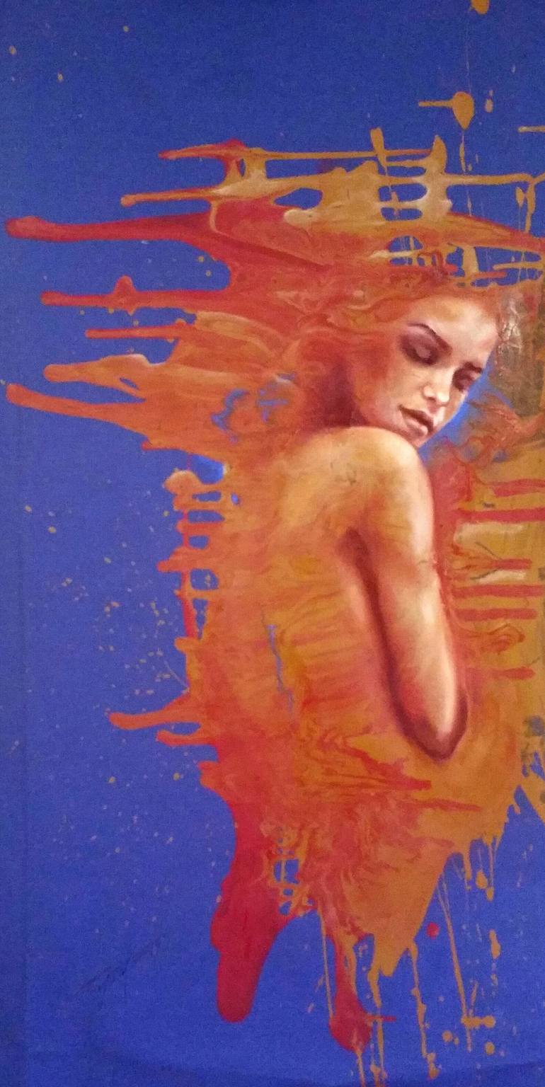 Original oil and acrylic painting on fabric 40x80x2. Ready to hang. Is a unique work, because I used liquid acrylic with oil on hand stretched fabric. After it dries I paint on it and cover it with glossy varnish. The glossy varnish on the mat surface makes the painting beautiful. A duplicate of thi...