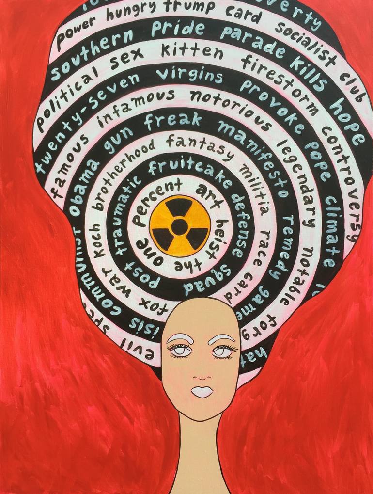I grew up in Laguna Beach, California and lived in Southern California most of my life, however, I am now residing half my time in North Carolina. I've been a professional artist for over 20 years, this is my full time job, it's not a back-up plan. I've shown my artwork in galleries across the United States and in Los Cabos, Mexico. In addition to my art I have published for books all sold at Barnes & Noble etc. but my true passion is painting and sculpting. I'm passionate about women's issues, equal rights, the environment and animals. Artist Statement: I often use vivid colors to feature topics with a darker undertone. Some of the subjects I paint about are: women, race, equality, politics, the environment, pop culture, power & mental illness. My work is often iconic and easily recognizable by my unique style of outlining my subjects both literally and figuratively.
