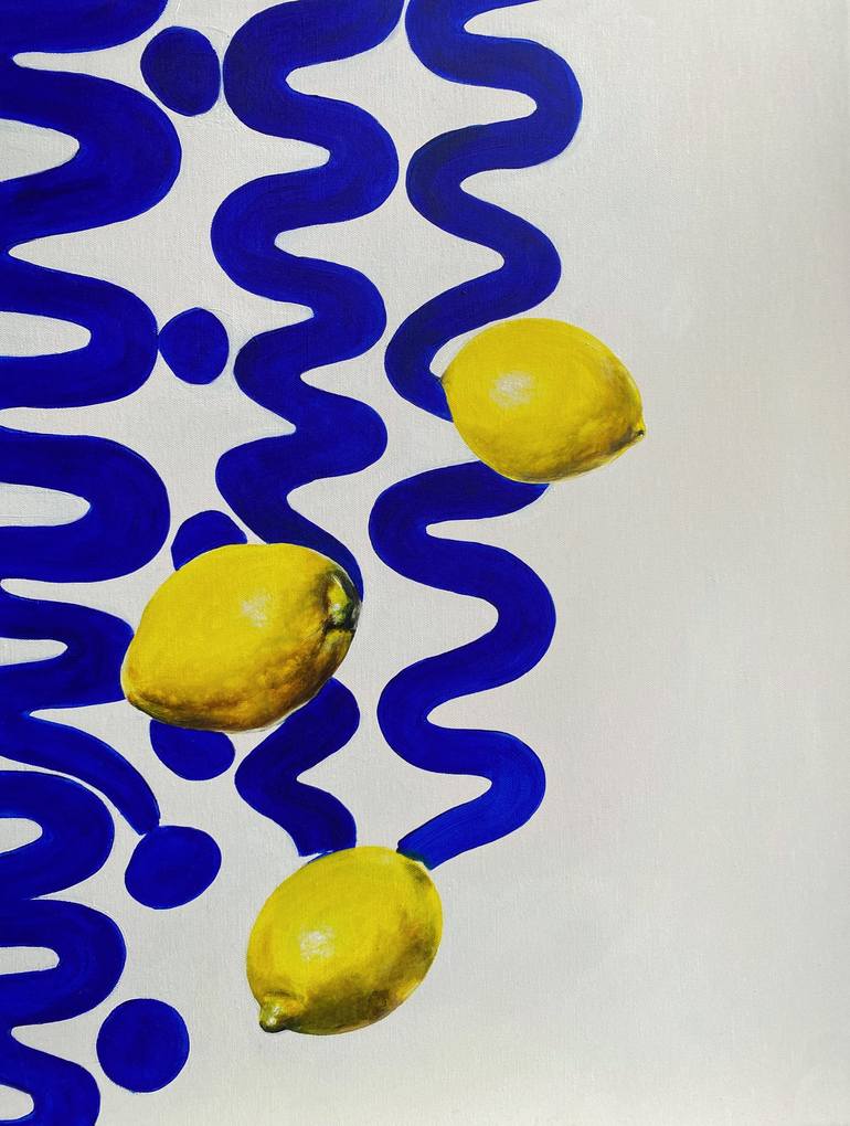 When life gives you lemons....paint them! This piece is inspired by the Amalfi coast & its infamous lemons. The wavy lines seek to represent the coastline. The colour combination is the primary focus of this piece. This piece seeks to evoke pleasant summer memories in the viewer.