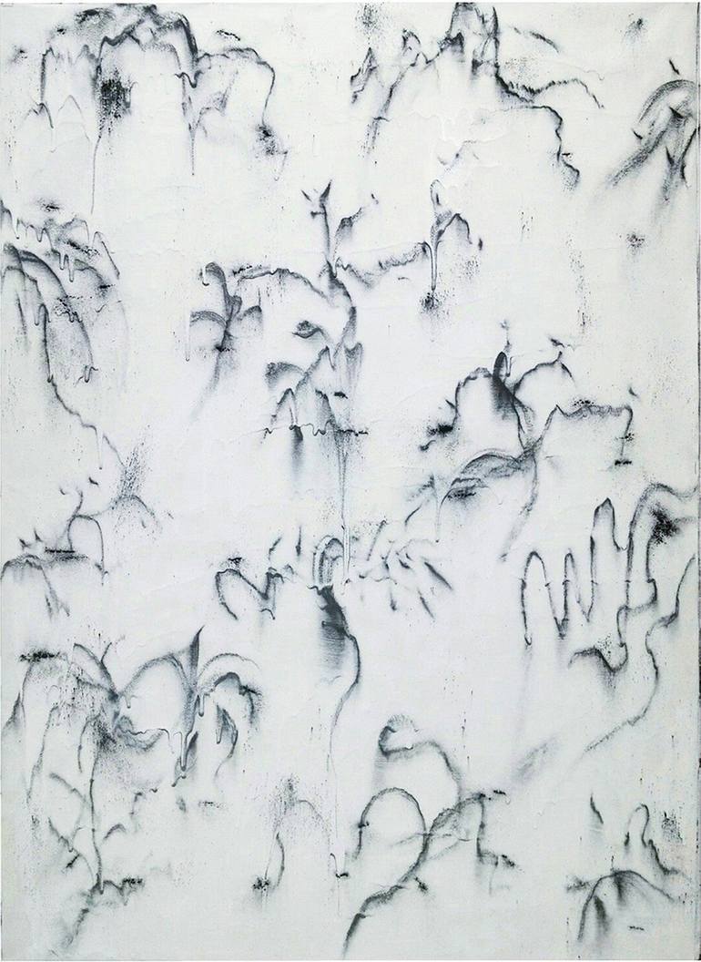 Abstract painting,Asian landscape painting. One of my black and whit series. Powdered iron and pastel powder was scattered and sprinkled on wet colors on canvas before the thick wet colors dried. so this painting work should be very fast and spontaneous. This painting has been done on unstretched c...