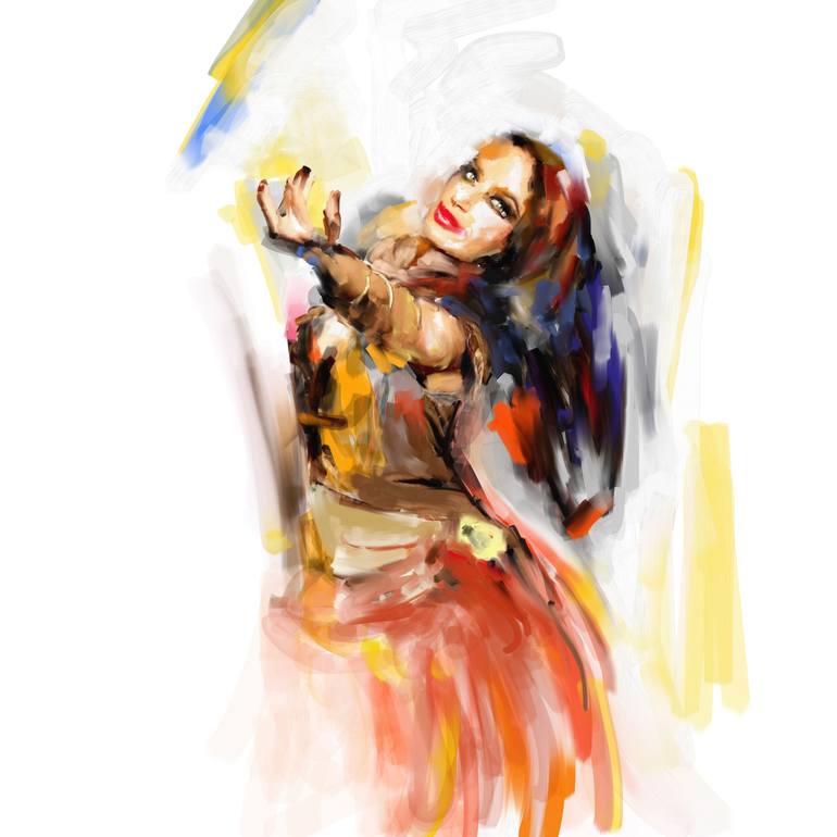 n this painting i have painted Middle Eastern dancer. Belly dance is an expressive dance which emphasizes complex movements of the torso. Originally a Middle Eastern folk dance, it has evolved to take many different forms depending on the country and region, both in costume and dance style. New styl...