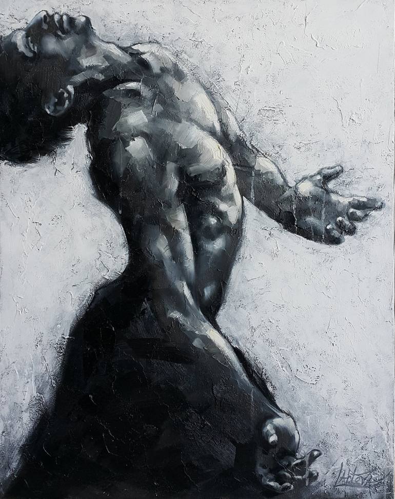 Original Painting Emotions - original artwork depicting a male dancer figure on a white background. Painting signed by the author on the front and the back. Painting in the interior does not maintain proportions, but only represents painting against a background of different colors and different st...