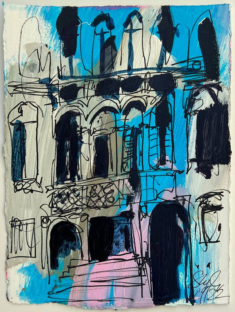 Venice is kind of my second home, I just love it and here and there I need to sit there to sketch und to paint a bit in this stunning town. This painting on Paper is a one of the very spontaneous mixed media works. Mixed media is perfect to find a way between reality and free painting.