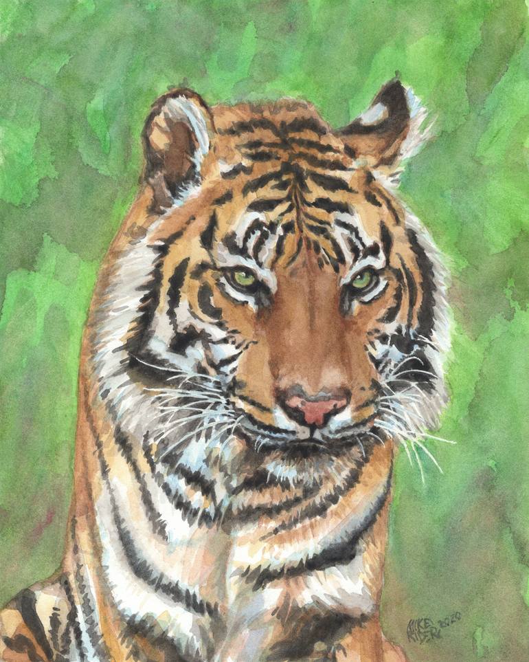 I photographed a tiger many years ago. I used those photographs as a reference for this watercolor painting. This was painted during the 2020 self-distancing period.