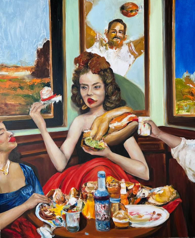 The painting is part of a series dealing with archetypes and popular vices, in this case gluttony.