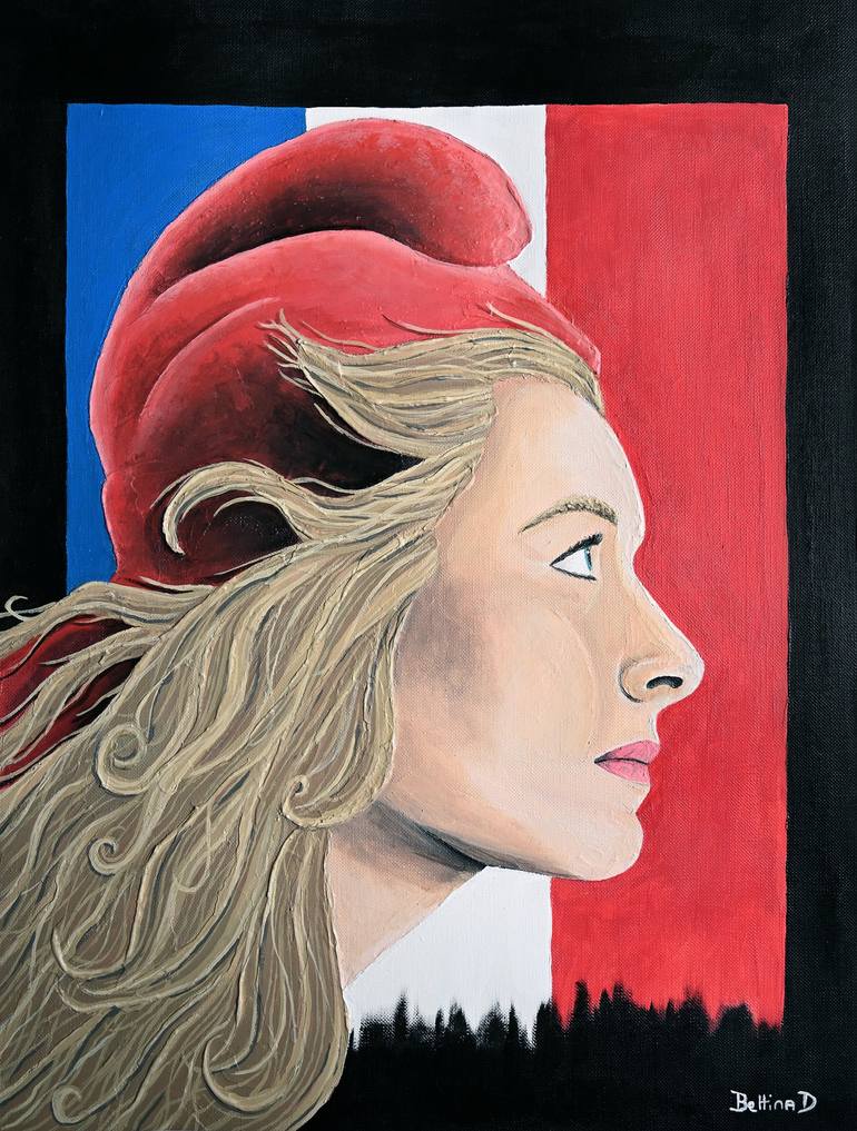Acrylic relief paint on 300g canvas texture paper. Portrait of Marianne, symbol of the French republic.