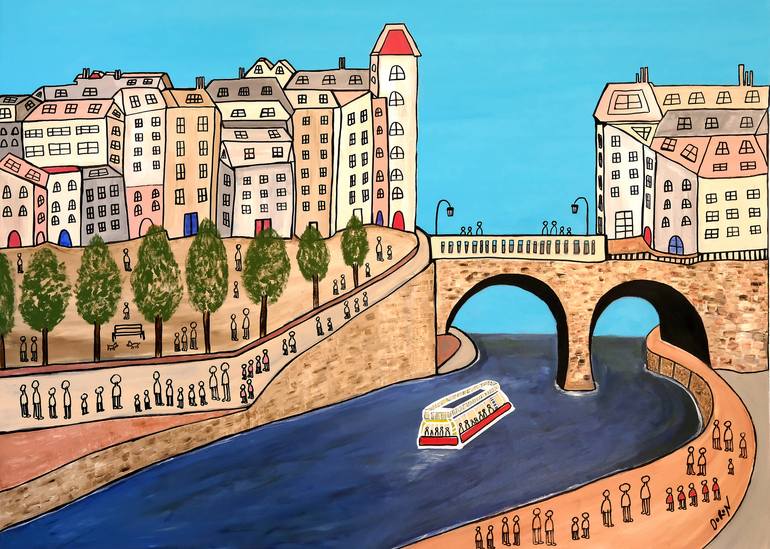 If you've ever strolled along the Seine on a warm summer evening, "Paris Along the Seine" will likely bring back some pleasant memories. The color and angles of the buildings, the people, the Bateaux Parisians, will all look and feel familiar. Original abstract is created with acrylic paint on uns...