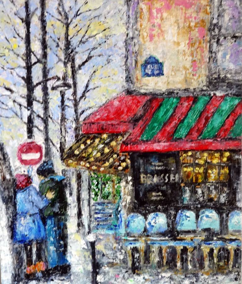 Paris Cafe Oil Painting If you're looking for a charming and cozy scene to brighten up your space, a Paris cafe on a rainy day oil painting might be just the thing. With its muted colors, soft lighting, and atmospheric backdrop of raindrops and umbrellas, this type of painting can add a touch of ro...