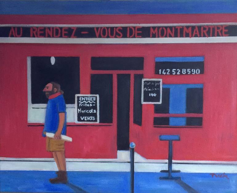 Paris-Montmartre-waiting For Friend" Painting