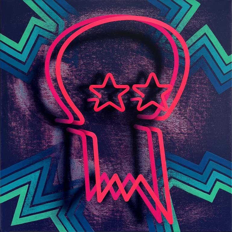 Lawless urban circus. Electric edges. Majestic racket of naked motorcycle emptiness. Acrylic, fluorescent pigments, UV varnish on canvas. Size: 40cm x 40cm. Signed on reverse.