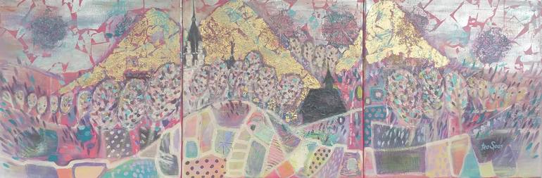 This is a multi-panelled artpiece, 3 x 40/40 cm; it is a mixed-media artwork, inspired by the MAIASTRA bird, from the fairytale written by Petre Ispirescu, inspired from the Romanian folklore. "Maiastra", means masterful or virtuous, and is a beautifully coloured bird, that sings devine music. In Is...