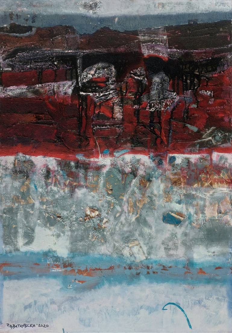 The substance of his textured paintings has been built by experimenting with the application of modern technological methods, as a characteristic of the new postmodern aesthetic.