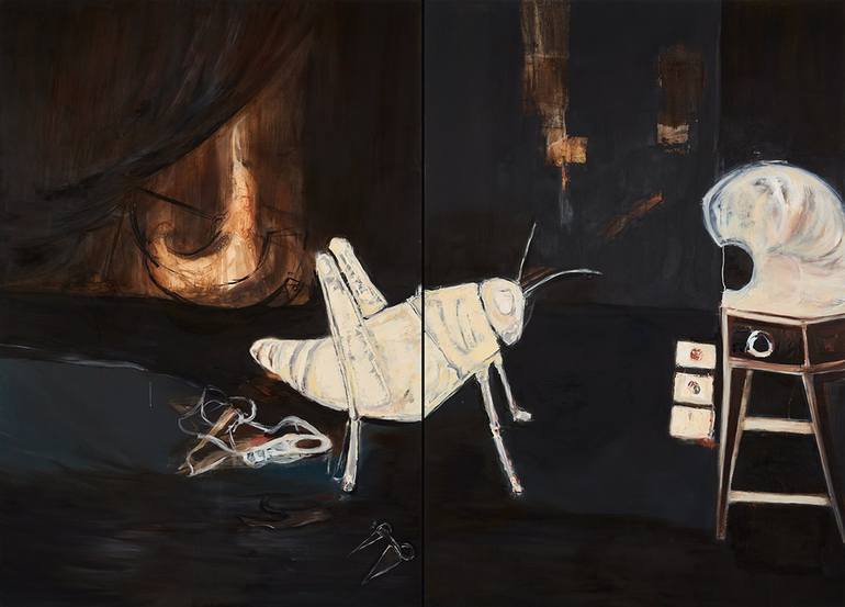 Born in 1976 in Gdansk Poland, painter. I strive to transfer fascination of the primitive and of the mystery of mysticism in my work. I like to put together the unspoken with the strength of pictogram, therefore paintings gained some duality: they contain spaciousness and depth alongside flat, purposely unfinished forms of shellfish and fossils. Strong red accents break the brown, green and everything enveloping black. This is a story about the mystery of existence. Story about the road we travel, certain stages when we look for guidance and clues, signs that we intuitively follow – especially in times of change and inner transformation.