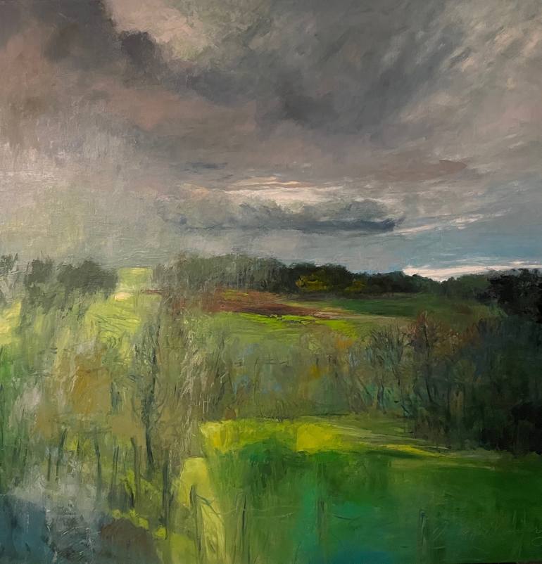 An early fall day with passing showers and changing weather, minute by minute. The green pastures are so intensely green in contrast to the grey skies. A day to watch the ever changing weather story shift from rain to sunshine.