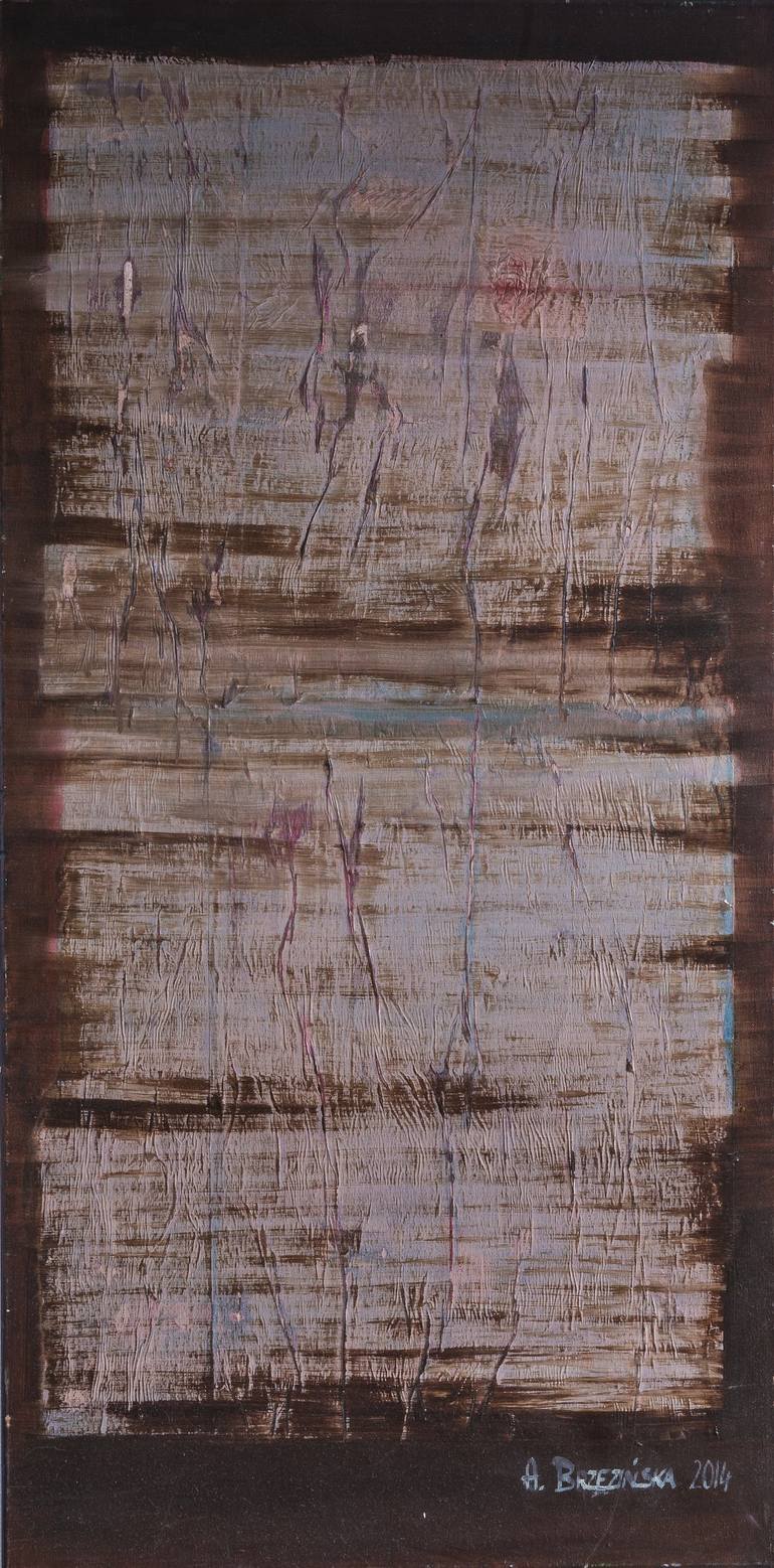 Agnieszka Brzezińska, born in 1975 in Wałbrzych, an artist, in the years 2014 - 2019 she studied at the Faculty of Painting at the Academy of Fine Arts. Eugeniusz Geppertt in Wrocław, where in 2019 she received a diploma under the guidance of Professor Janusz Merkel. In her work, the artist mainly moves in the field of abstract painting. It transforms the observed reality, but it is difficult to see the elements taken from reality in the pictures themselves. The essence of the work is not focused on their "meaning" or "understanding" but on their "feeling". Above all, it seeks to evoke the artistic experience of the viewer - delight, emotion, strength or reflection. The subject of the research, which he devotes all his attention to, is structure. Her work shows the effort of finding new forms of expression, diligence in building a multi-layered composition, devoid of shapes and figures, and speaking only in structure and color. The artist does not strive for the effect of beauty and liking viewers with fashion. He uses his own painting technique to solve real and difficult artistic problems, he is not limited to a narrow amount of obvious colors, but gives us subtle colors, new combinations of forms and colors, original and fascinating.