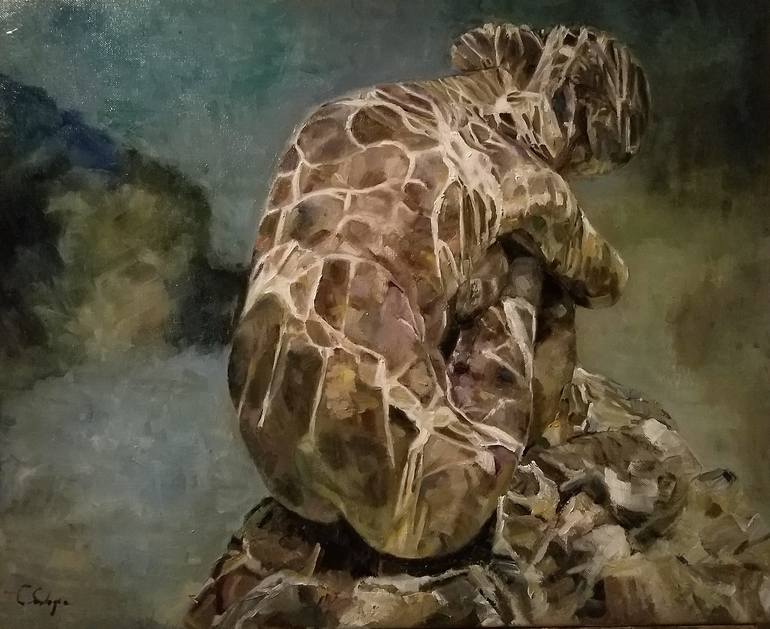 A underwater sculpture of a woman inspired by Jason deCaires Taylor work. An eternal expectant woman.