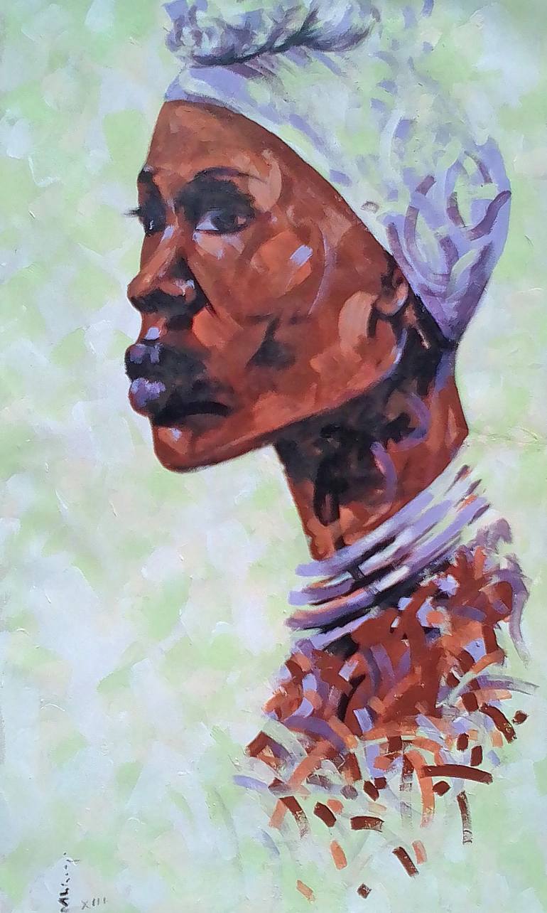 Mbongeni's work is inspired by music and dance, he captures motion, mood and the rhythm to engage the viewer into the beauty of his musical work. He considers his artwork as visual music and expresses his feelings musically on piece of canvas singing his songs with a paintbrush. The body of his work is largely figures, evolving from abstract images to recognisable elements using vibrant colours, texture and 3D effects.