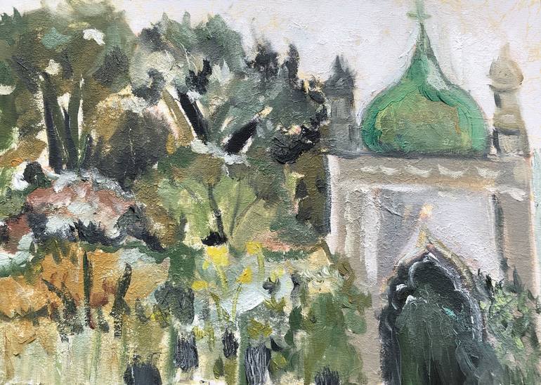 A full summer day in The Pavilion gardens, painting the gate that leads to the corn exchange. The iconic domes are often described as onion shaped and I love to paint them, their roundness is so deeply satisfying. A world of fantasy and magic in stone and copper. I wanted to paint a feel of the seve...