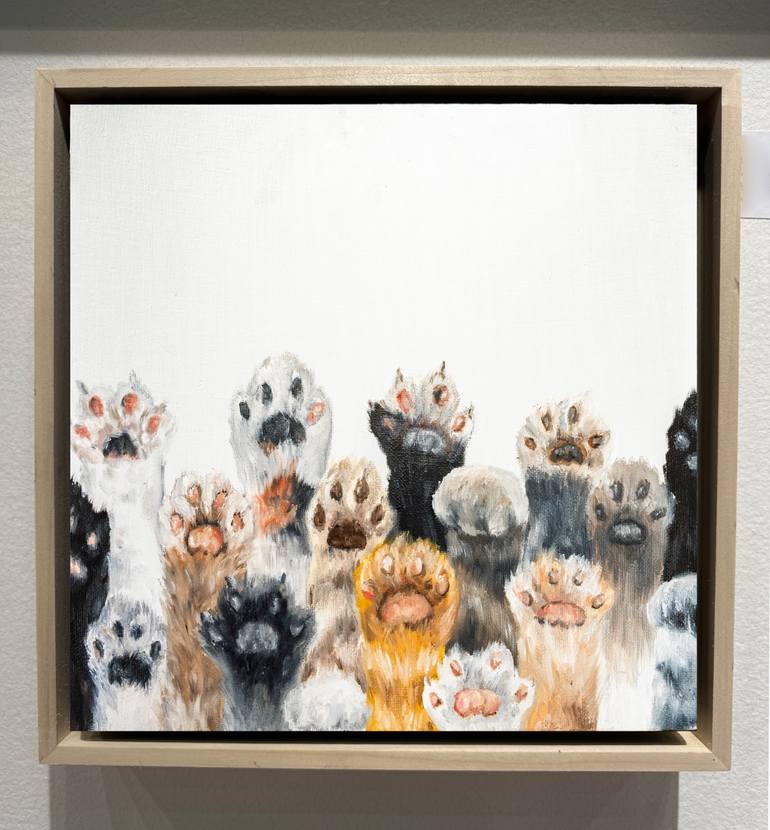 Paws | Playful Contemporary Cat Paw Painting in Oil ““Paws” is a joyful and heartwarming tribute to everything we love about cats. A playful lineup of raised kitty paws—each with its own color, texture, and attitude—fills the lower part of the canvas, creating a charming scene that instantly sparks...