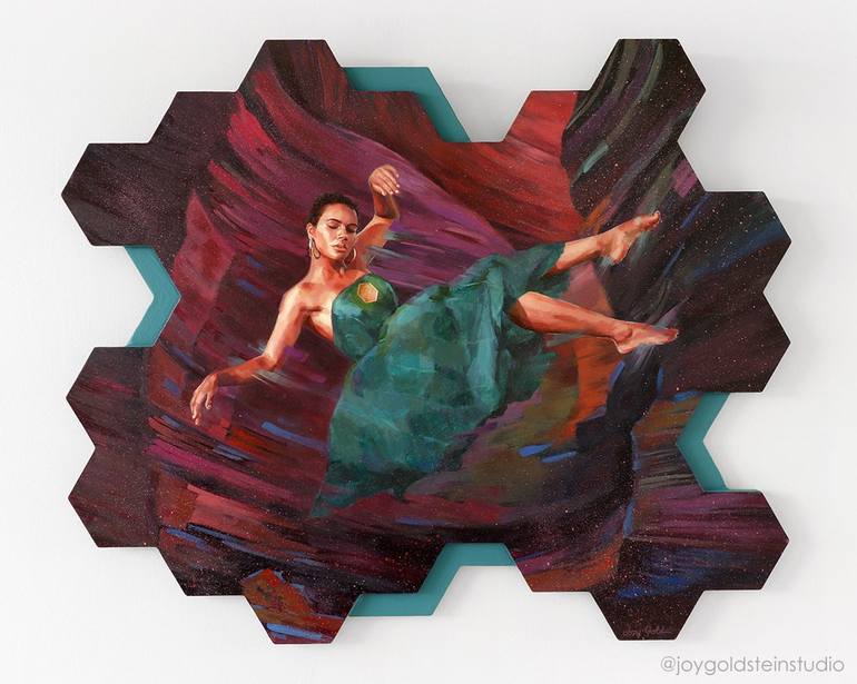 TITLE: "Peace Within" MEDIUM: Oil and Acrylic on CNC Cut Wood Panel DIMENSIONS: 30"W x 25"H x .5"D Painting of a woman at peace in a desert canyon. This woman looks like she is falling or floating, however you conceive it in your mind, but her heart is at peace. Where do you find peace from? To ...