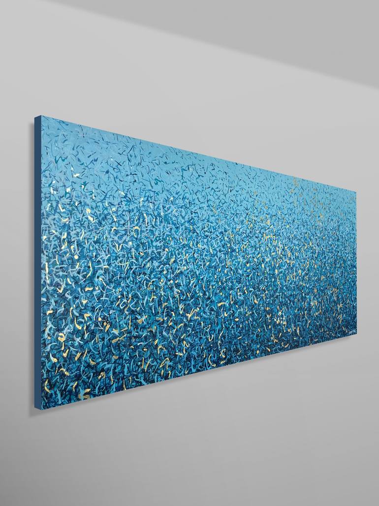 Peaceful Waters Dance By George Hall. Mixed media on canvas. 'Peaceful Waters' is a painting that was inspired by Australian Beaches. It is a detailed painting with colour crossing over one another to create effect. This is a painting to express how nature is free to do whatever it wants, without e...