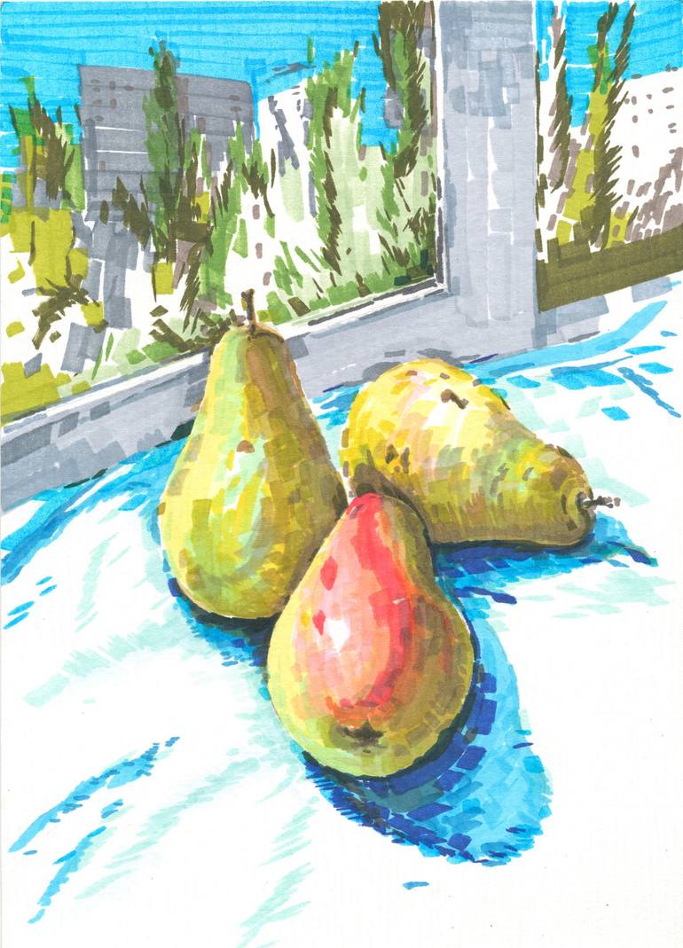 This is a unique small artwork on paper , no copies. These juicy pears in the sun ☀️ looks so attractive as a gold. Will become a bright accent in your room. Bright and fresh colours contribute to good mood and positive emotions. This is a unique artwork, no copies. The picture is sold unframed.