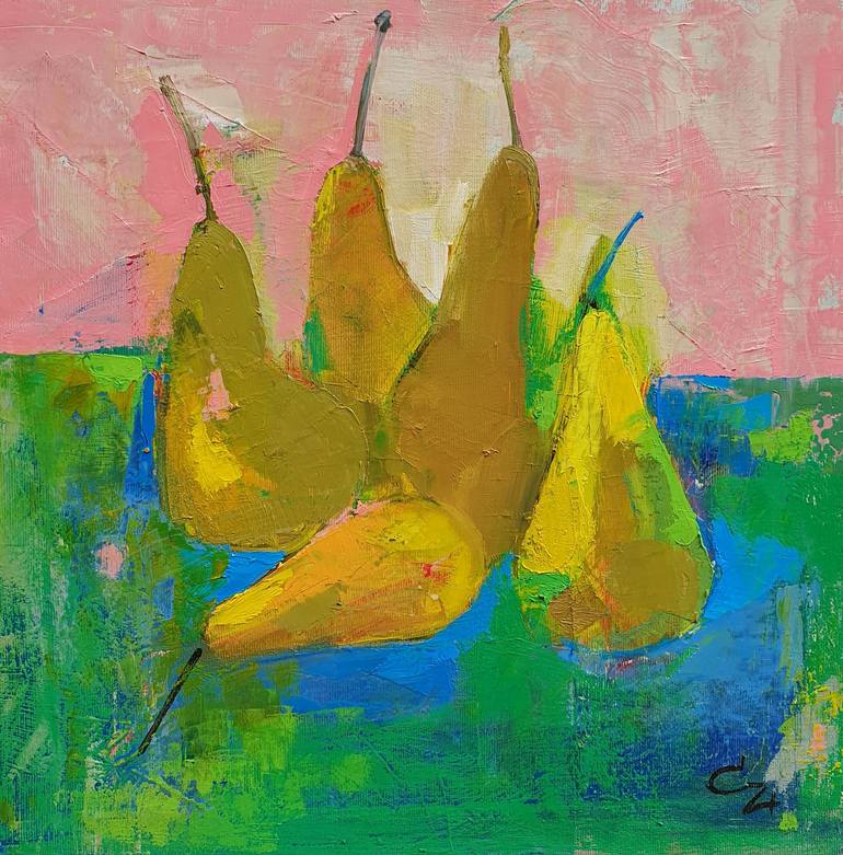 Original painting, series of small works with pears. Oil on canvas.