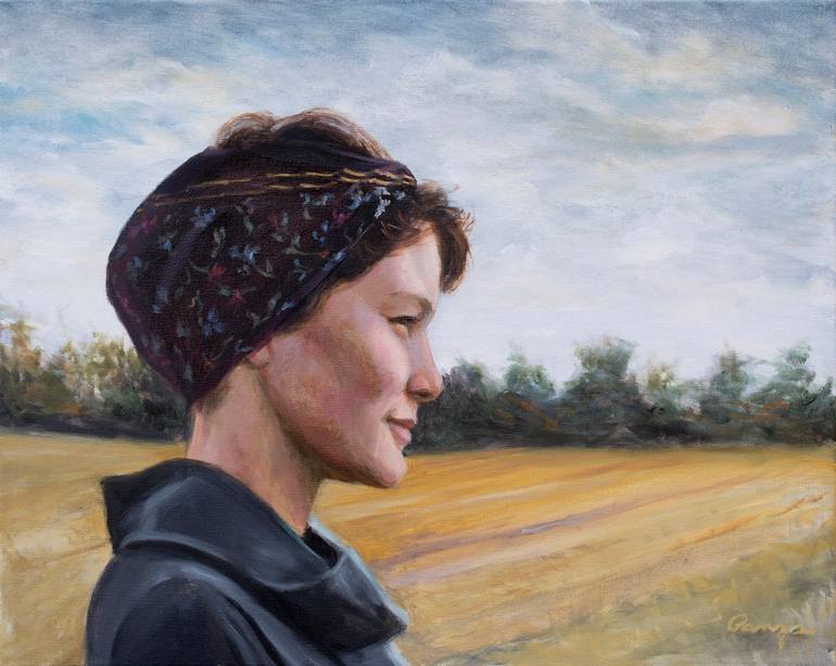 I wanted to create a piece that was reminiscent of Bouguereau but felt more contemporary and Eastern European. The beautiful young woman has a contemplative look of confidence and strength.
