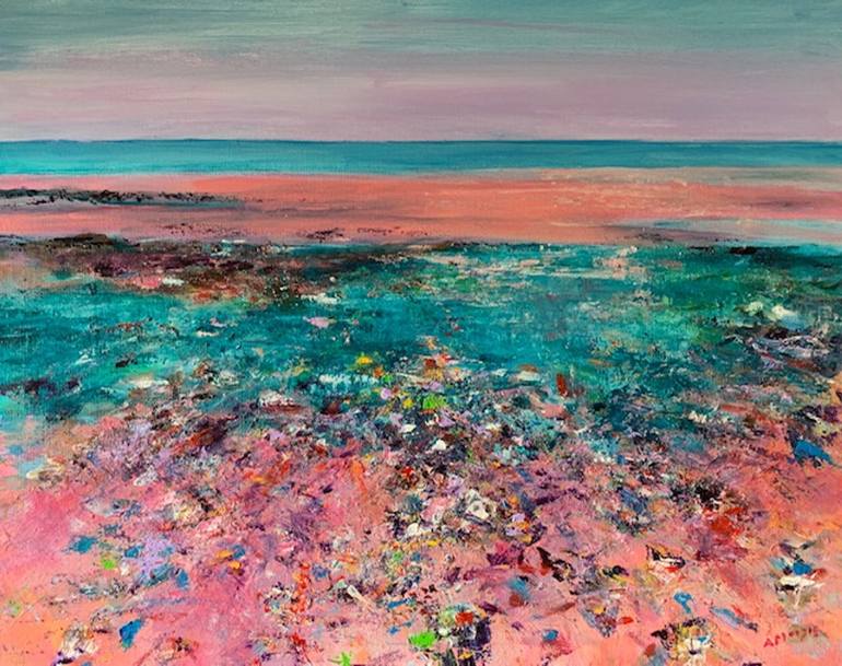 The myriad of colours in the pebbles on the beach at the north Yorkshire seaside town of Saltburn-by-the-Sea are perfect for a high intensity acrylic painting. This work is presented on canvas ready to hang. A certificate of authenticity will be provided.