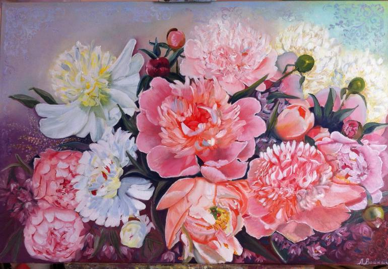 This picture is painted to order Bouquet of Peonies.This large painting is painted in oil on canvas. . Written with a brush. THIS picture will suit any interior. The sides of the painting are painted. Great gift for woman. The picture will be sent in a roll. if you want to order the ...