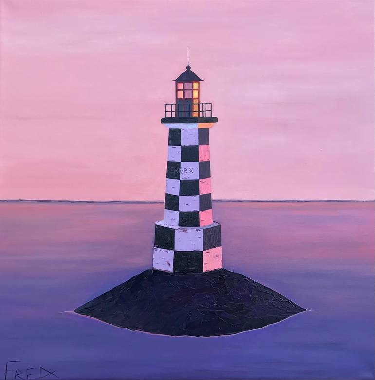 Sunset colours on the Perdrix Lighthouse in Loctudy in France Satin finish
