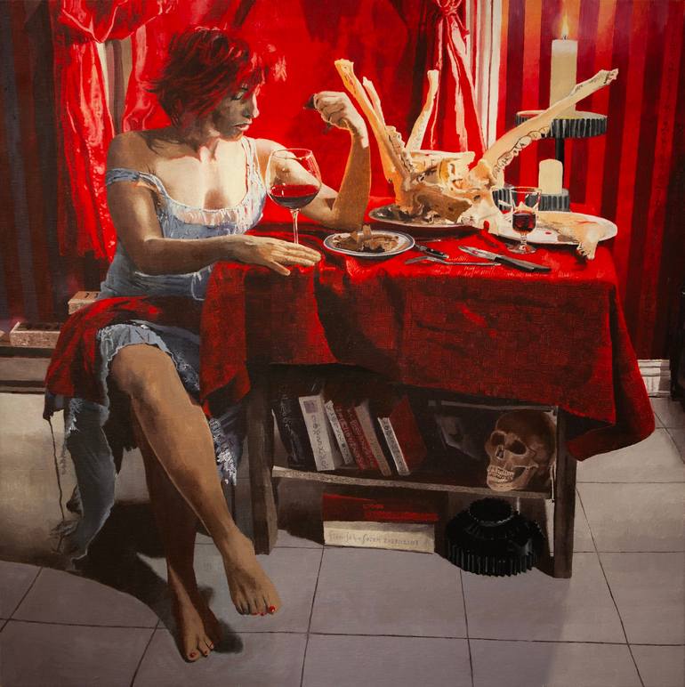 I'm a contemporary Canadian painter from Quebec, known for my darkly surreal oil paintings, often featuring still lifes with classical or slightly unsettling themes. I also made abstract art and other styles