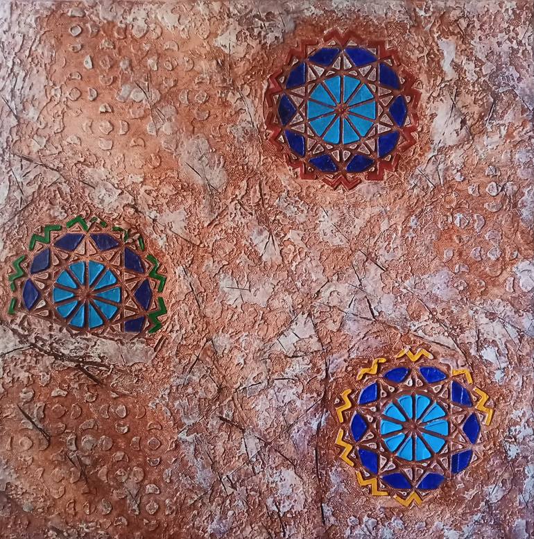 In this work I was inspired by my interest in ancient civilizations and their aesthetic and artistic expressions. So I gave space to suggestions that recreate with mixed media techniques an imaginary archaeological find and bas-relief decorations on a wall. In particular, in this case the decoration...