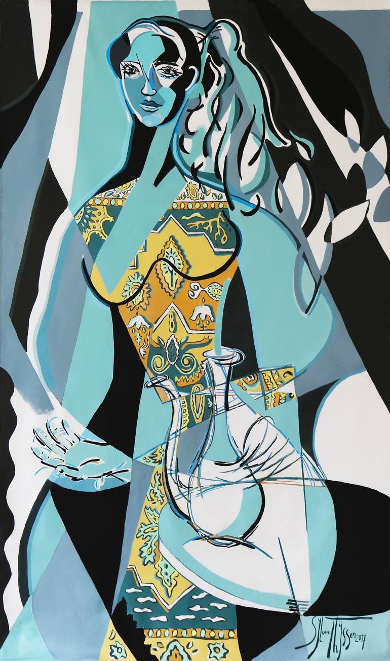 Persian Lady (Nederlandse tekst onder de Engelse tekst) My first painting in the series 'Demoiselles Mondiale' is the canvas 'Persian Lady'. The series shows strong women, painted on large, loose canvases, inspired by my travels, encounters, art that touches me and my own feminine strength. Per...