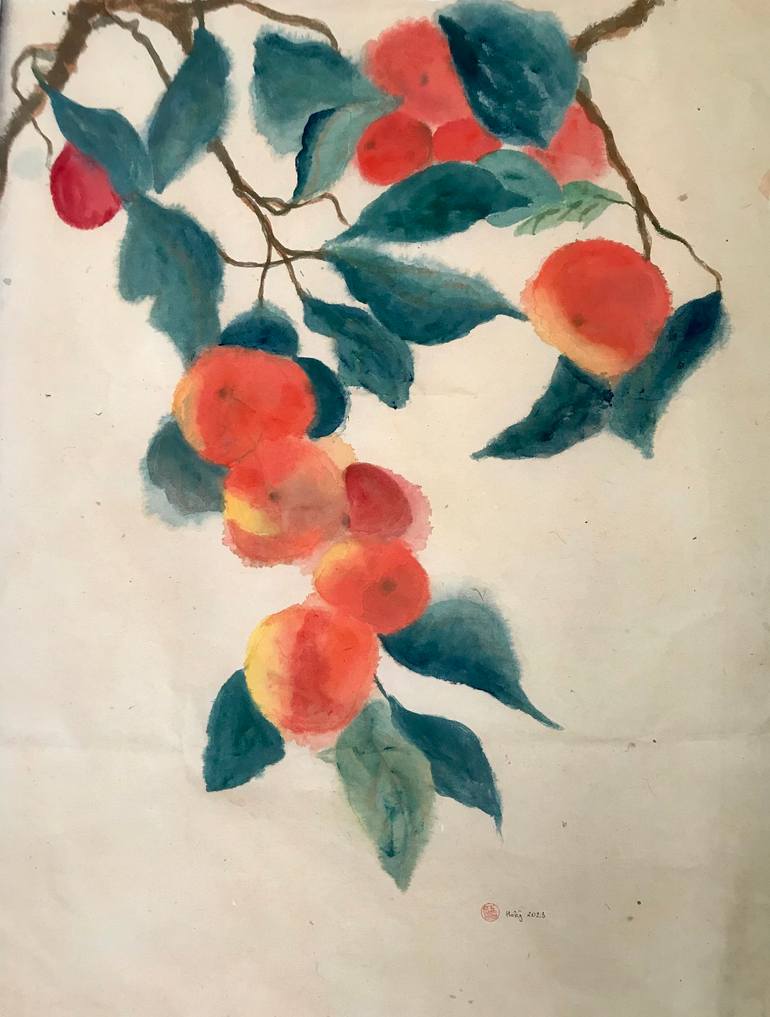 I first saw a persimmon tree at someone's backyard garden in a gloomy winter day. The orangish red color fruit immediately attracted me. The little fire-like spots warmed me in that very foggy afternoon and have brought me hope and peace. I chose zdó paper for this subject for its simplicity and spi...