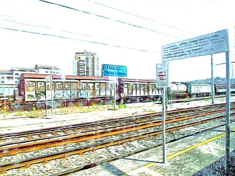 This watercolor is part of a series of photographs taken during a seven-hour train trip; starting from Teramo, passing through Pescara, arriving at Roma Tiburtina station, in July 2010 With the original photographic shots I realize digital watercolor painting, submitting them to processing steps in...