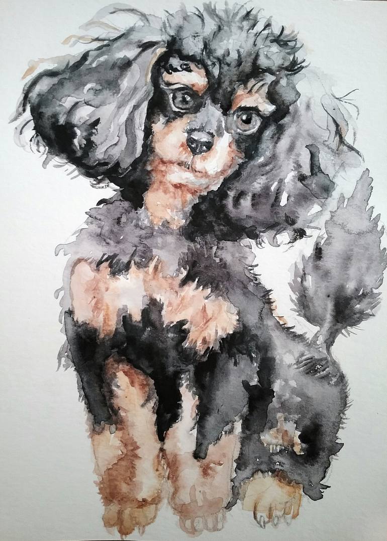 Original warercolor on paper,phantom poodle,painting