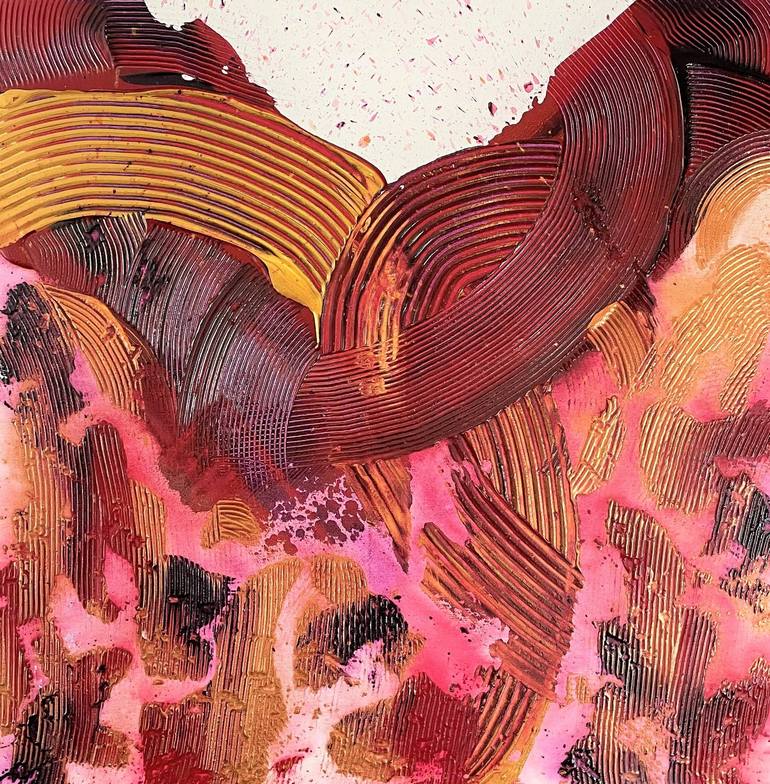 This work is inspired by a burning phoenix. The work is highly textured with raised portions of the canvas which create channels that draw the viewer in to feel the painting itself. The work uses a combination of acrylic and metallic paint to create a multi-textured, layered piece. My work is sub...