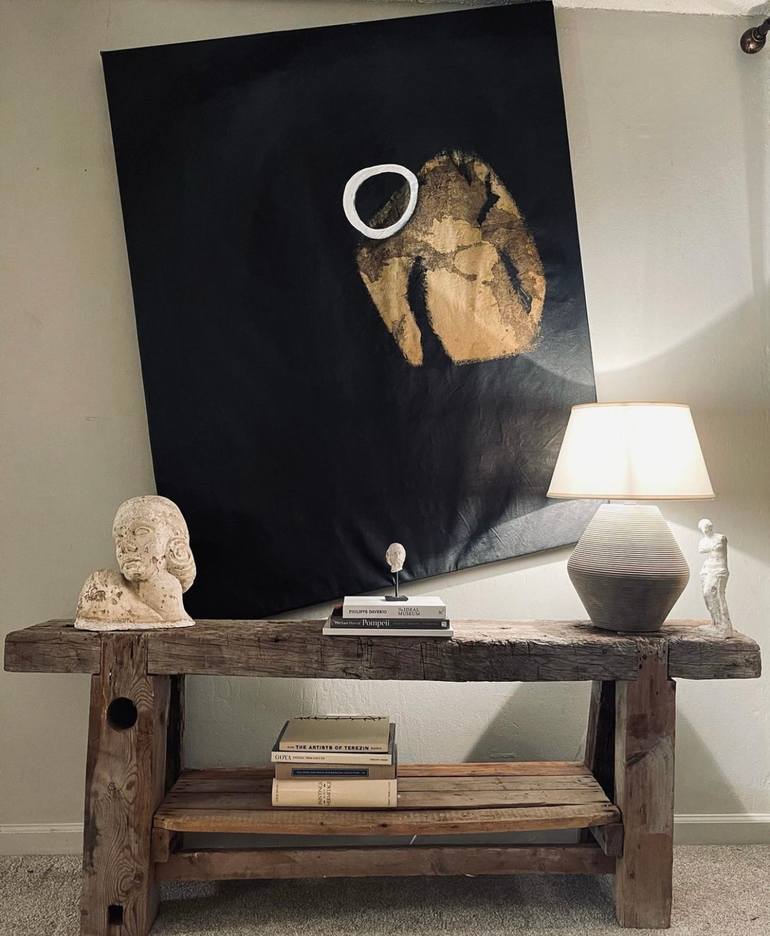 Acrylic 、ink on linen In order to make this piece have the Wabi-Sabi feeling, I stretched it into irregular quadrilateral with stretch bars of different sizes to form natural fabric wrinkles to express "imperfection is also a kind of beauty"